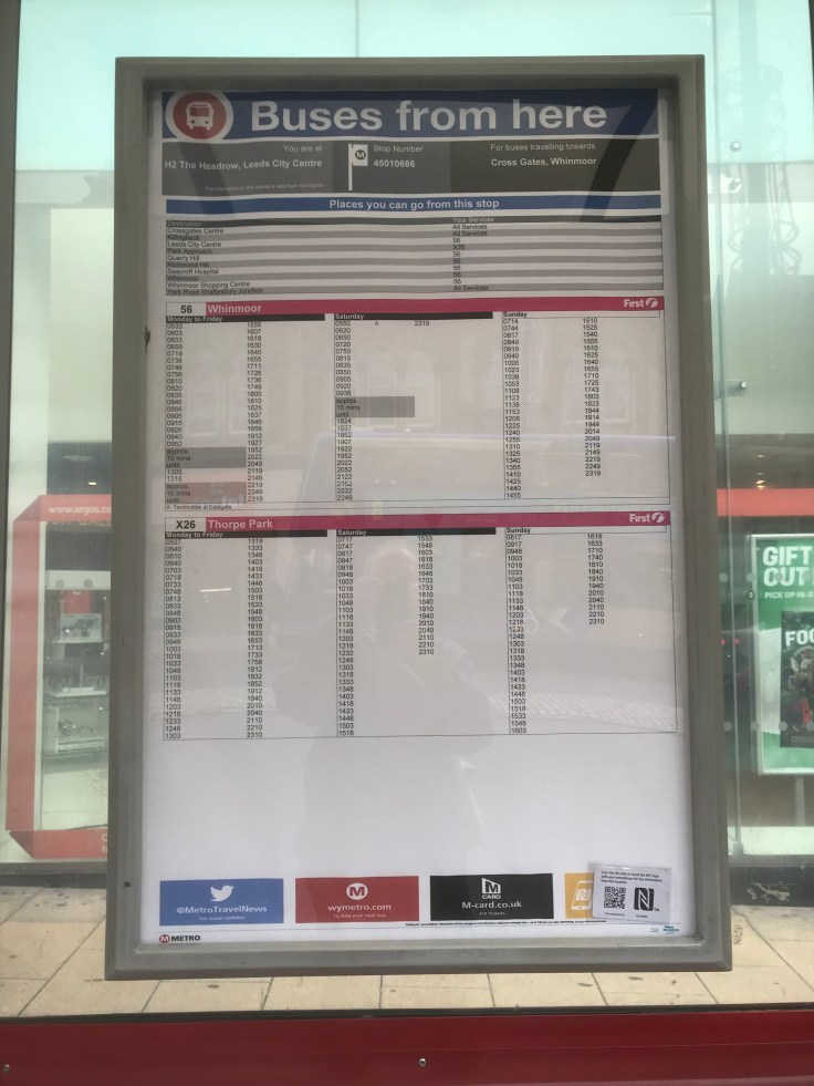 It’s a classic example of why West Yorkshire Combined Authority should cease timetable production and instead hand it over to the bus companies who need to step up to the plate and produce eye catching promotional marketing leaflets that inspire and encourage bus travel just as T.K.Max, Next and the others are doing for their new stores.