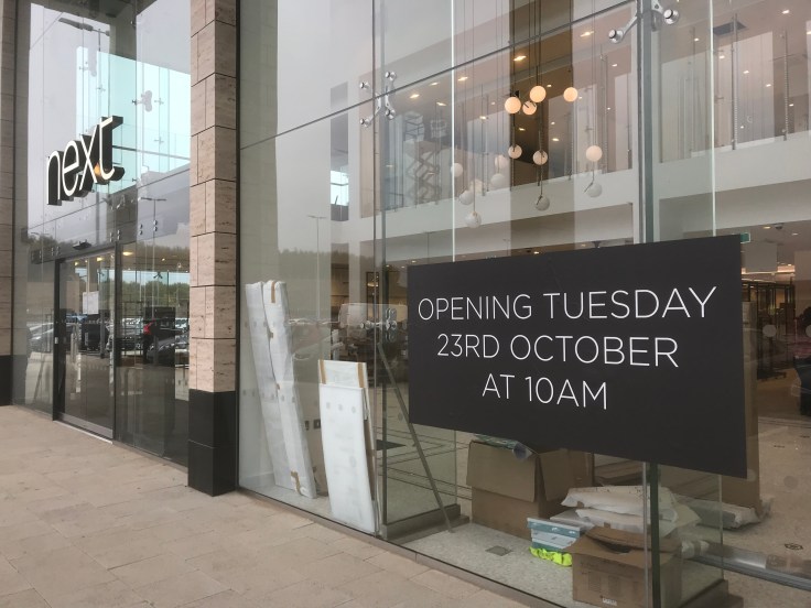 The usual retail suspects can be found at The Springs … Next and T.K.Max occupy the ‘bookends’ with Boots, a huge M&S Simply Food (no clothes), all the Arcadia Group brands (Top This and Top That), H&M and, inevitably, eateries including Nandos as well as other promised food offerings. An Odeon cinema opens next year and obviously as it’s 2018, a plush gym is included in the scheme.