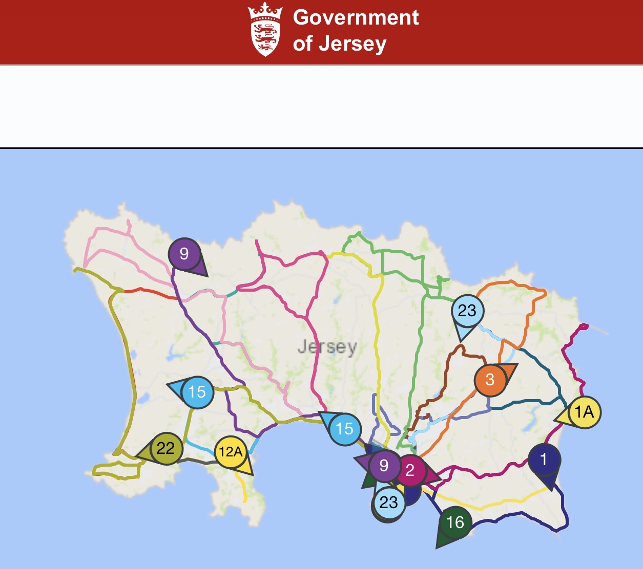 There’s a very impressive zoomable colour coded online map which shows the exact position of every bus on each route by colour as well as every bus stop being clickable for departure times and interestingly this sits on a Government of Jersey webpage rather than the LibertyBus website.