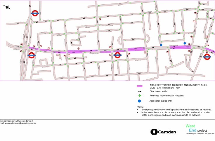Meanwhile over at Tottenham Court Road another two way scheme with a new southbound bus and cycle lane has just been introduced.