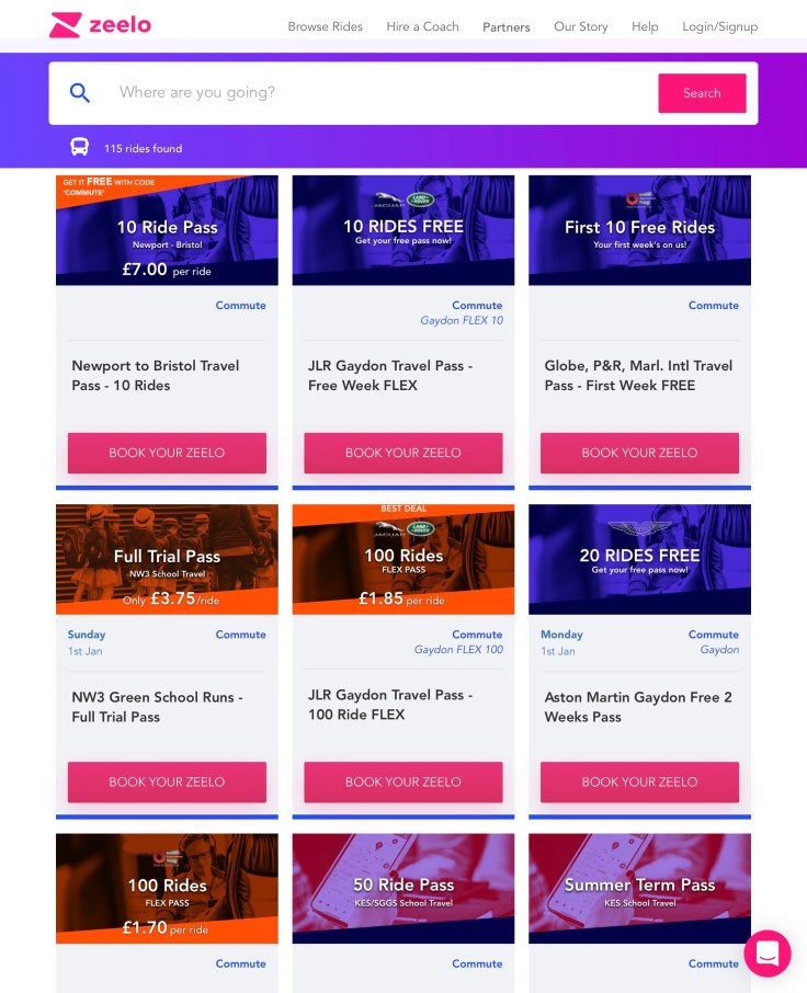 This same bulk purchase of rides is the norm on Zeelo’s more bespoke commuter trips they’re promoting on their website to places like Jaguar Land Rover’s plant at Gaydon, Ocado’s head office in Hatfield or to three private schools in the Hampstead area London NW3. Those are just some of the journeys that come up when you hit the ‘Browse Rides’ button on Dani’s website masterpiece.