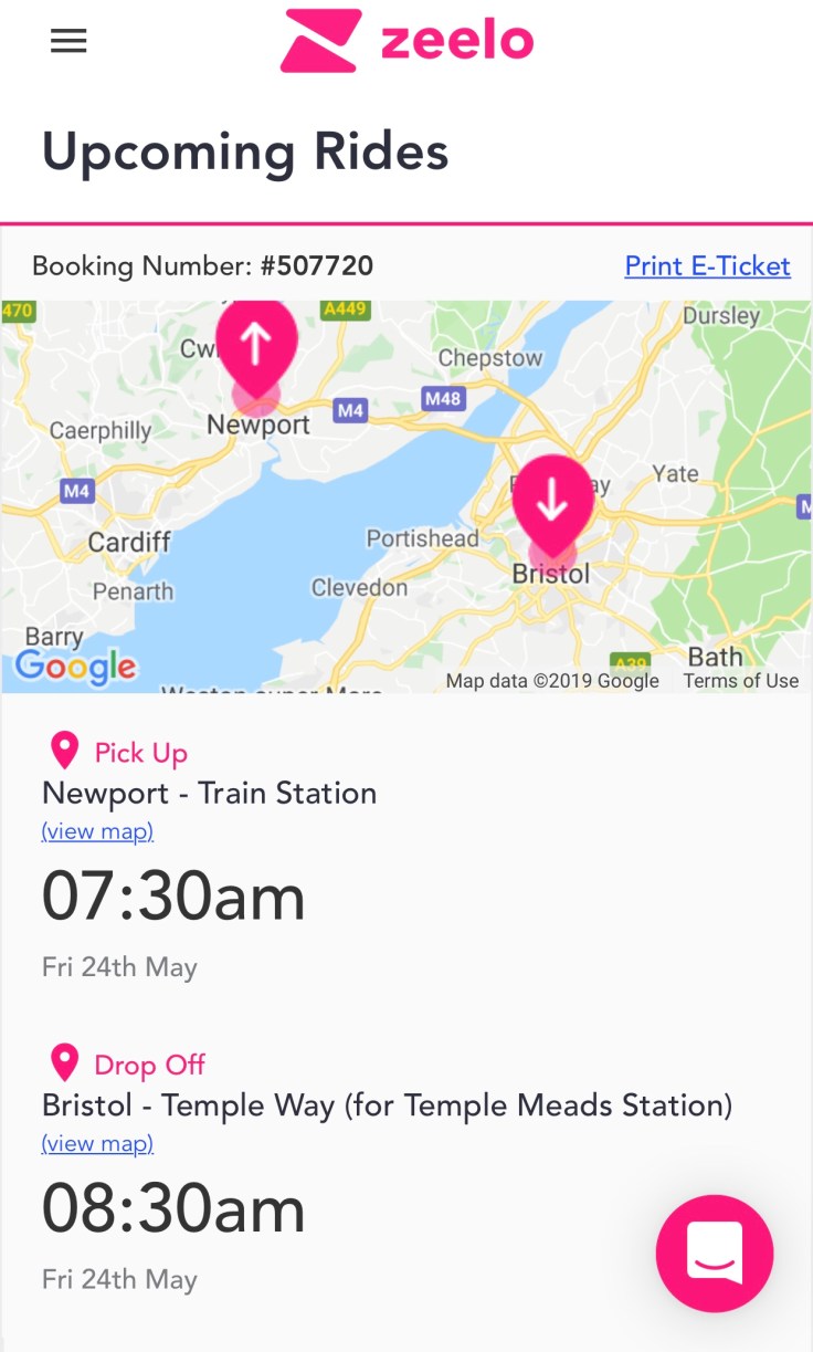 That’s exactly what Snap are doing to build a share of the express coach market which I tried out last October between London and Bristol and this morning I gave a try out of another new player in the ‘online-travel-with-no vehicles-of-their-own’ sector called Zeelo who’ve recently started a new commuter coach service between Newport and Bristol.