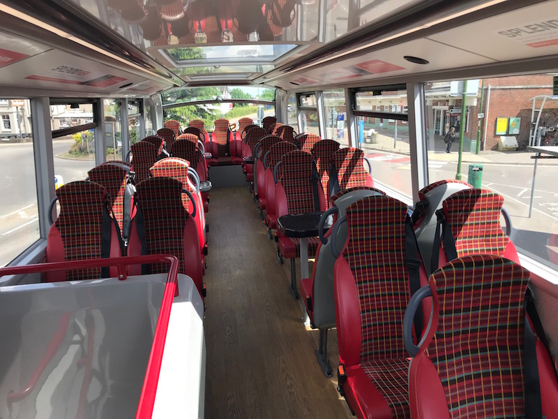 The Citymaster is superb; we loved the UB garage code (presumably for Upper Beeding), the smart moquette and the light streaming in from the upper deck roof windows and a large rear window. It was a real treat to ride through such delightful countryside on board this splendid vehicle. The Routemasters and open top were good fun too.