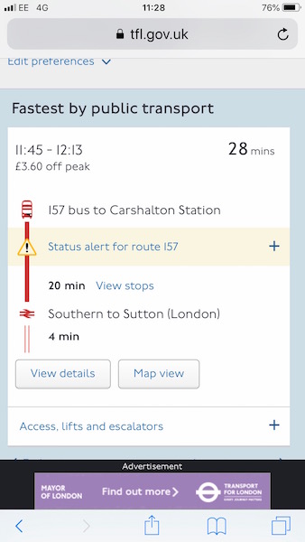 This got me thinking about Journey Planners and GoSutton. While I was out and about on Tuesday I used TfL’s Journey Planner to find out how to get from St Helier Hospital to Sutton Station. Interestingly it’s first recommendation at the time I asked was to take a 157 to Catshalton Station and then catch a Southern train over to Sutton at a cost of £3.60 and a journey time of 28 minutes. Er, that’s odd as the super new GoSutton minibus could have taken me there in little more than 10 minutes for a cheaper £3.50.