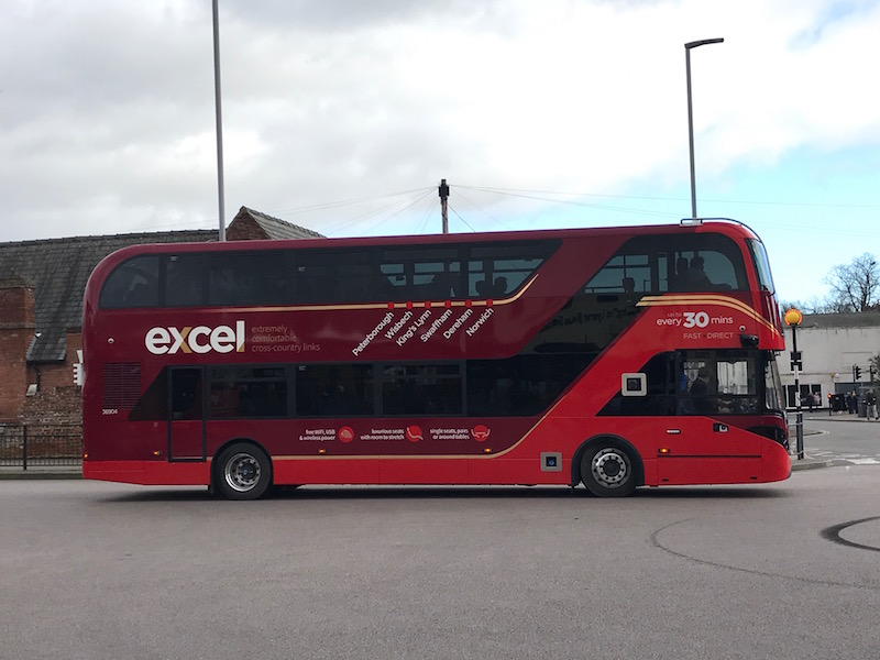 It’s ‘take a ride on another high profile brand new fleet of buses’ time again. Another £5.3 million spend. Another whole route conversion. This time nineteen buses for First Eastern Counties’ excel branded Norwich to Peterborough 84 mile route. And all this before Johnson’s promise last week of “4,000 beautiful, bouncing, British built low carbon buses” (since when have buses bounced?).