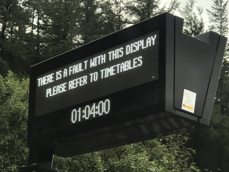 … even though there are electronic signs showing departures on the platforms – although they seemed to be playing up at various stations along the line today, with non sensical information at Skipton …