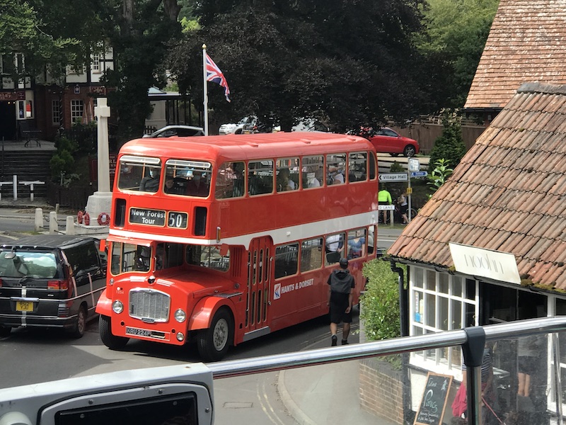It’s not long before the bus arrives in the very popular village of Burley; well worth a visit if you haven’t been. It’s also on the Red route and I had to do a double take when a brightly red painted Bristol FLF appeared round the corner.