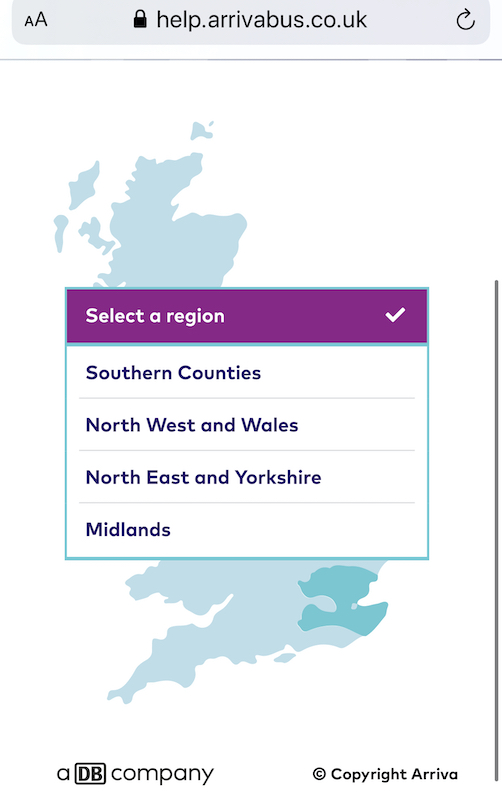 I noticed there’s an Arriva Help Portal which has a sub menu of “Select a region” – but these are the newer Arriva style regions following the Group’s last management reorganisation – you’d have to really be in the know if you lived in Milton Keynes to realise you come under the same region as Oswestry (ie Midlands) and not Southern Counties – and Oswestry is not North West and Wales.