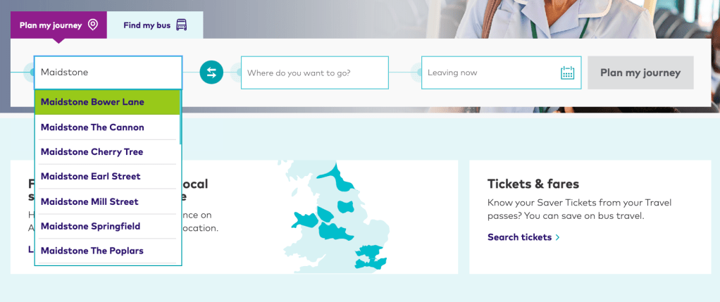Currently the best of the big groups is Stagecoach, but even this falls down where there is not an up to date map, or your service is deemed not important enough to show on the map, and you don’t know the number of it.