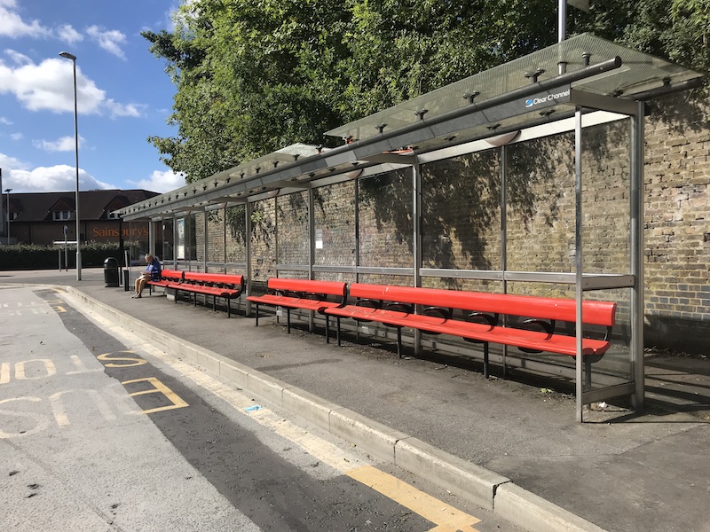 East Grinstead station has one of the longest bus shelters and seats in West Sussex – the same style I encountered on my recent trip to book a bus in Bristol.