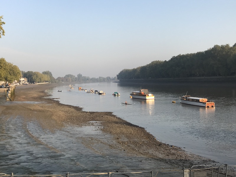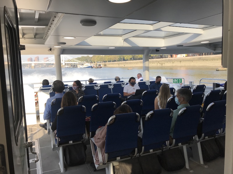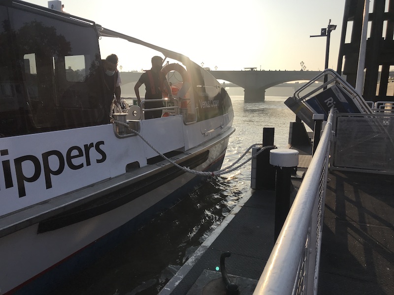 At just before 08:00 the smart looking Uber Boat branded vessel came into view under Putney Bridge, the gate automatically unlocked, the traffic light turned to green and within a couple of minutes it had moored and we were boarding. That’s all eleven of us. It was intriguing to see most passengers had timed their arrival to within a minute of the boat arriving and the body language told me they were all committed regulars – other than the aforementioned female novice, like me.