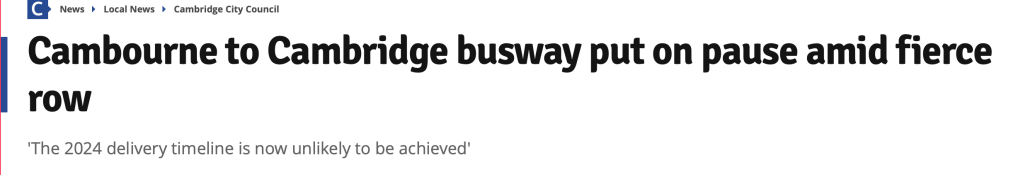 Combined Authority Mayor James Palmer has a long term grand vision for a ‘Cambridgeshire Autonomous Metro’ (CAM) including 140 miles of exclusive ‘track’ across the wider Authority area while the more locally focused Partnership wants to deliver a lower key busway from Cambourne into Cambridge. Palmer said he’d dig up the busway if it got built and reckons a short term solution of improving bus routes to get residents in the habit of using public transport is what’s needed while he works on his CAM idea.