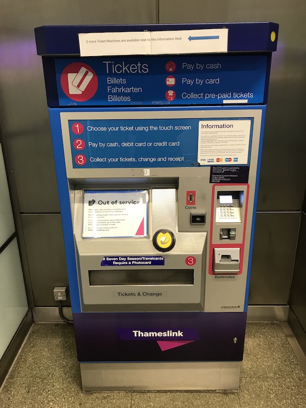 Or if you really want, you could buy a ticket from a nearby Thameslink ticket machine (still in First Capital Connect colours for any brand aficionados); well you could, if it was working.