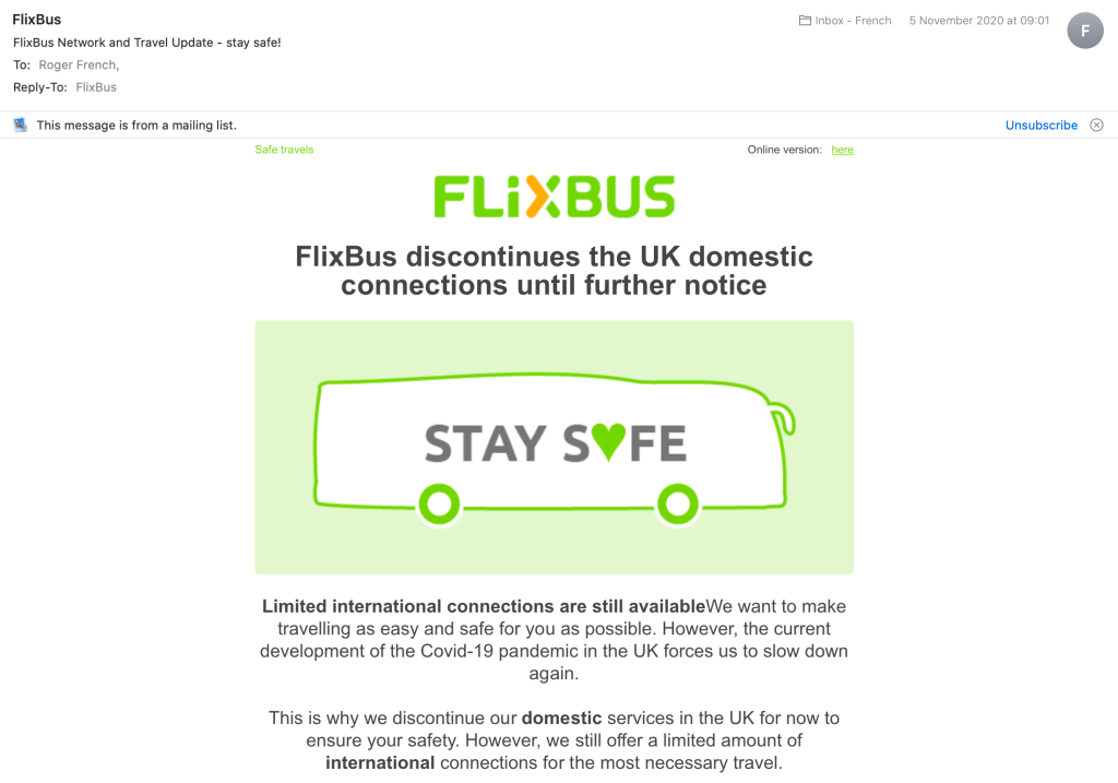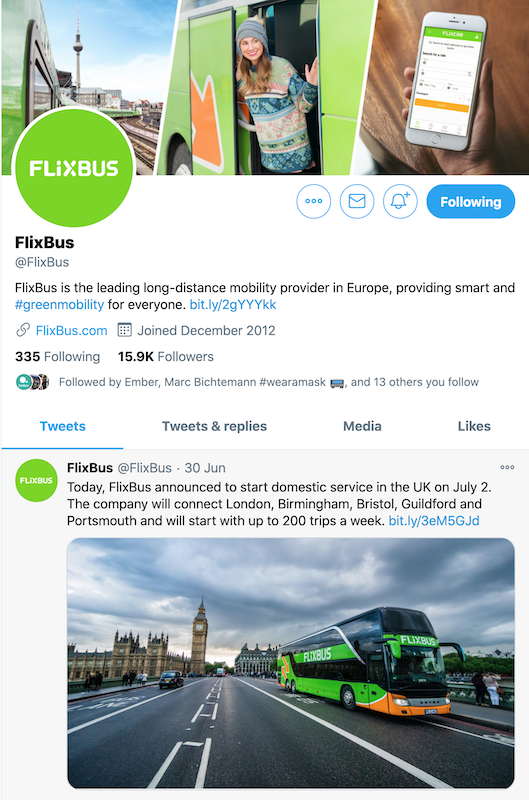 Lucky I’m on their mailing list to find out about the discontinuation as the FlixBus Twitter feed still shows news of the 2nd May launch with its pinned tweet.