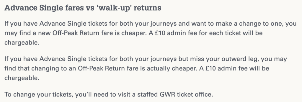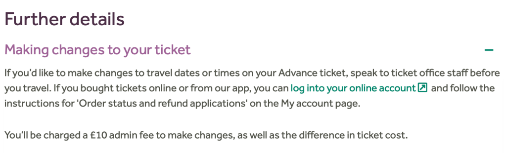 The trouble is with these announcements, they don’t seem to be followed through to advice and help ‘on the ground’. Here’s East Midlands Railway’s website current advice wrongly referring to the now abolished £10 admin fee….