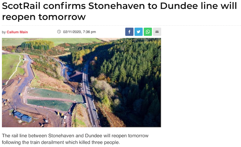 More welcome train news this week was the track being reopened at Carmont, south of Aberdeen, after August’s tragic and awful fatal train crash into a landslip. It must have been very poignant for rail staff taking trains over this stretch of track for the first time after the crash. Looking at photographs of the recovery and rebuild, Network Rail staff and their contrators have done a fantastic job getting things back open again bearing in mind the site’s inaccessible location.