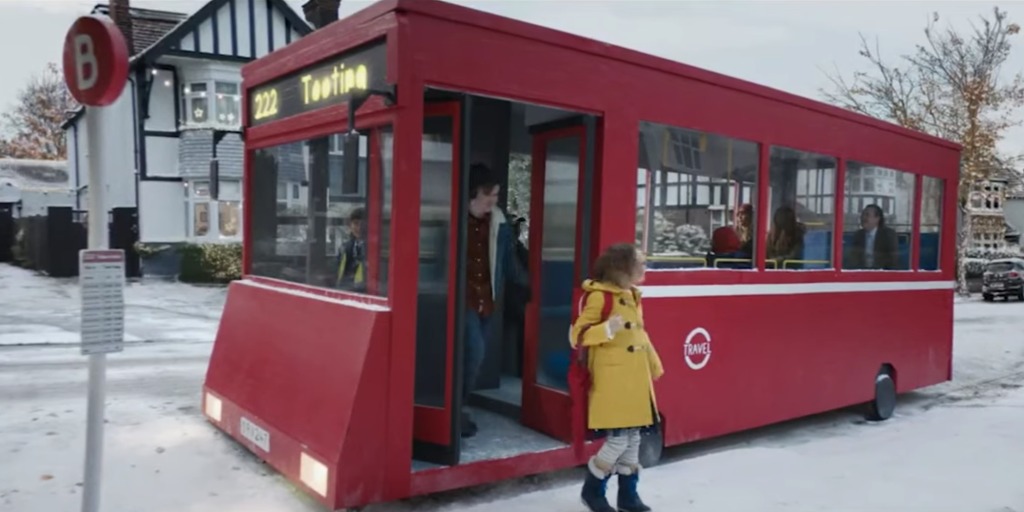 To end more positively, it’s nice to see a bus feature in the John Lewis/Waitrose Christmas advert this year. And a nice red one too. It looks like the creative team have taken their inspiration for the bus shape from Yutong’s electric brick-like bus and I’m pleased to see a timetable is posted on the bus stop B. Some pedants have already pointed out route 222 doesn’t go to Tooting (Hounslow to Uxbridge) but I’m sure most of us don’t mind.
