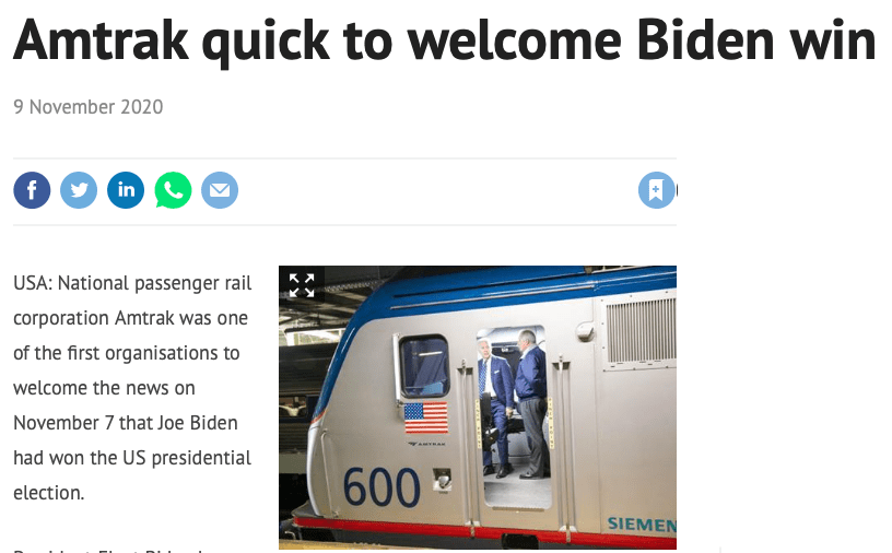 Someone else in the news this week, a guy called Joe Biden, also seems to have an interest in trains with photos circulating on social media of him enjoying a journey or two with the nickname ‘Amtrak Joe’.