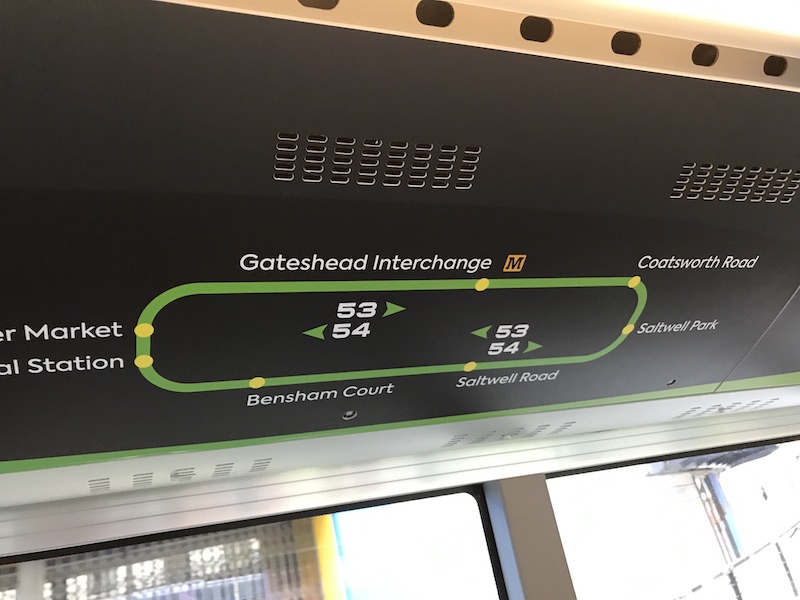 Despite heroic attempts by GNE drivers there was inevitable minor bus bunching on an intensive service like the 53/54 which doesn’t venture far from crowded city centres and the inevitable impact on timekeeping. Some judicious bus priority wouldn’t go amiss – how about it Nexus?