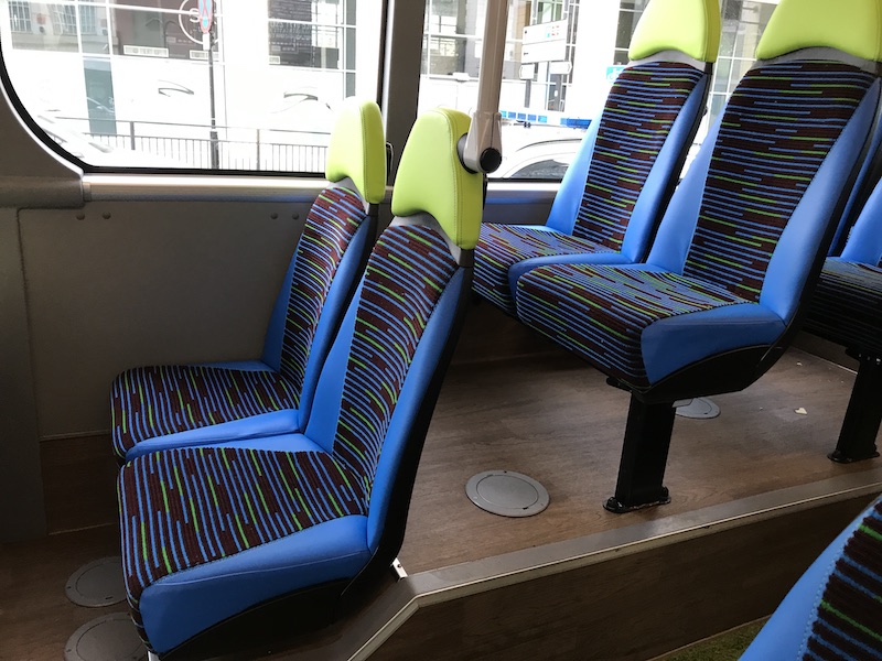 The seats themselves are described by GNE as “comfy and plush trimmed with stylish British moquette paired with environmentally friendly vinyl fabrics”.