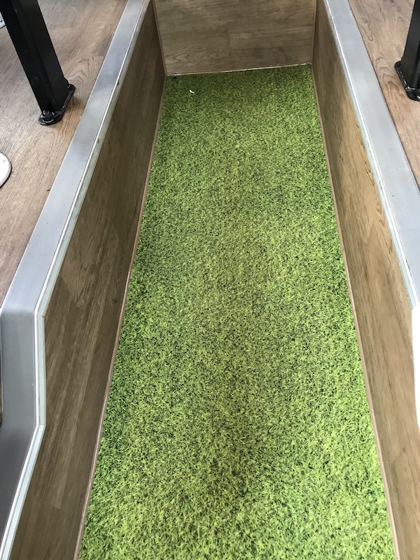 The interior ambiance created by the clever use of colour and lighting along with the smart moquette and novel ‘grass looking’ floor covering really does make for a very attractive look.