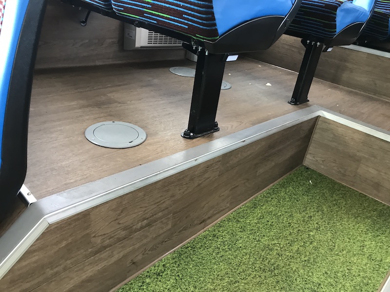 Like the Leeds buses there are 17 seats in the raised rear portion including some very high steps up to the rearmost 13…