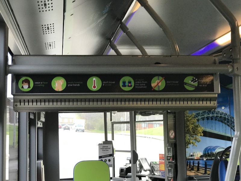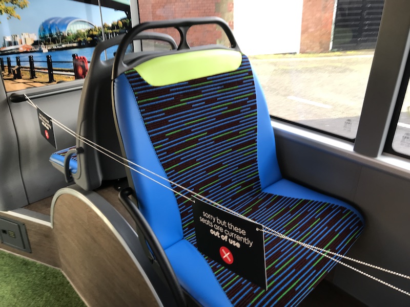 Inside the buses it was also noticeable the absence of full-on notices about Covid and all the associated stuff. Indeed the only reference to any restrictions/procedures was a subtle roping off of the back to back seats behind the driver and some small size symbols and messages on the rear of the wheelchair space facing next stop display, which were hard to read as they were so small.