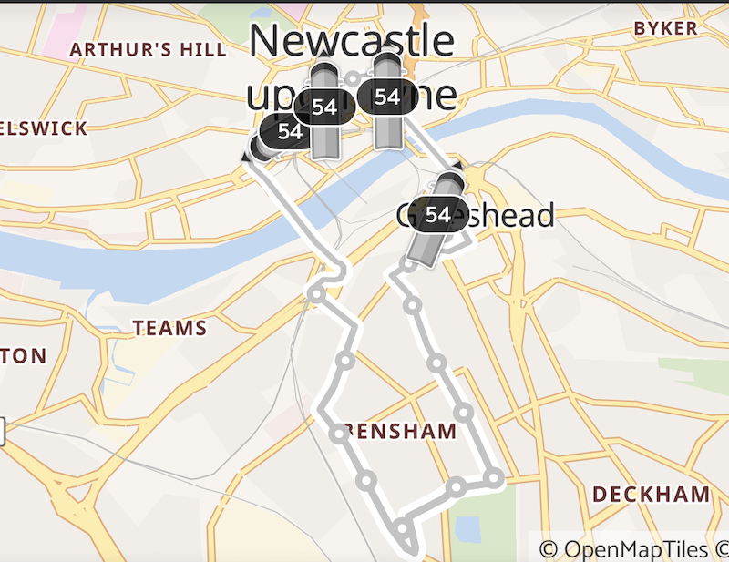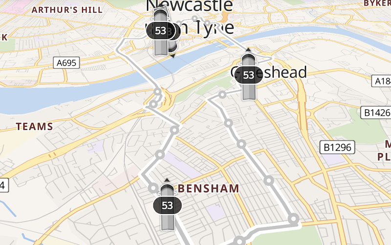 All credit to GNE that the location of every bus is available on the company’s website and app so passengers can make informed choices of which bus to catch from any bus stop on the circuit, although it’s a shame the 53 and 54 are shown separately as it might be helpful for them to be combined on one map when waiting in the Saltwell Park area.