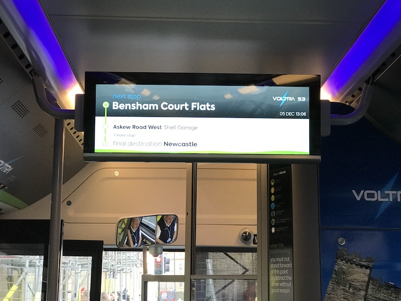 The next stop displays weren’t working on the buses I travelled on yesterday and instead a smart Voltra brand name was displayed …