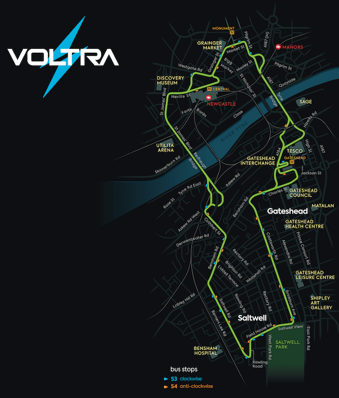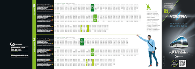 Voltra buses are being used on GNE’s circular route 53/54 which link Saltwell Park with Gateshead and Newcastle. As you’d expect there’s a very attractive leaflet to a style that matches the branding on the buses.