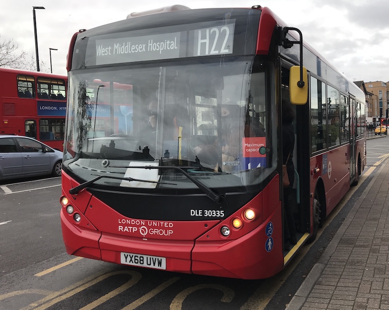 It’s all a bit confusing for people in Whitton High Street as until yesterday they got an H22 to Richmond on the west side of the road but from today it’s now a 110 on the east side; and to West Middlesex Hospital until yesterday it was a 110 on the east side of the road but now it’s an H22 on the west side. You can imagine the puzzled looks among passengers today; I saw a number caught out by getting on their usual bus, only looking at the number rather than noticing the destination.