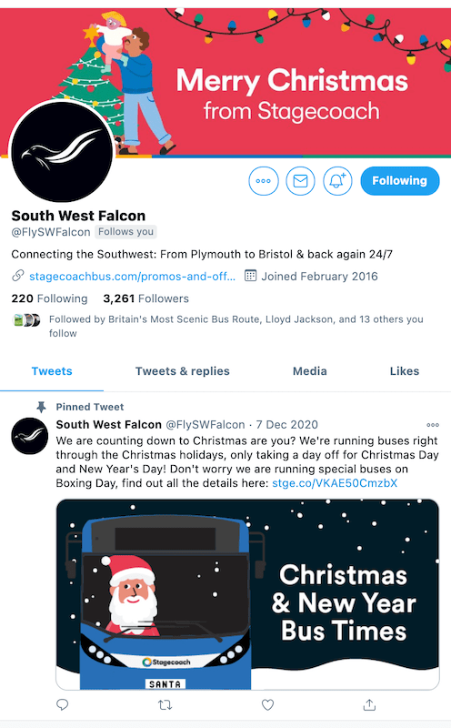 … but at least at 15:30 yesterday there was an update confirming a reduced timetable of seven journeys a day (every 135 minutes) will run from Sunday (oddly including am 01:00 Plymouth to Bristol journey) except the Twitter header is still celebrating Christmas – perhaps that’s to keep all our spirits up?