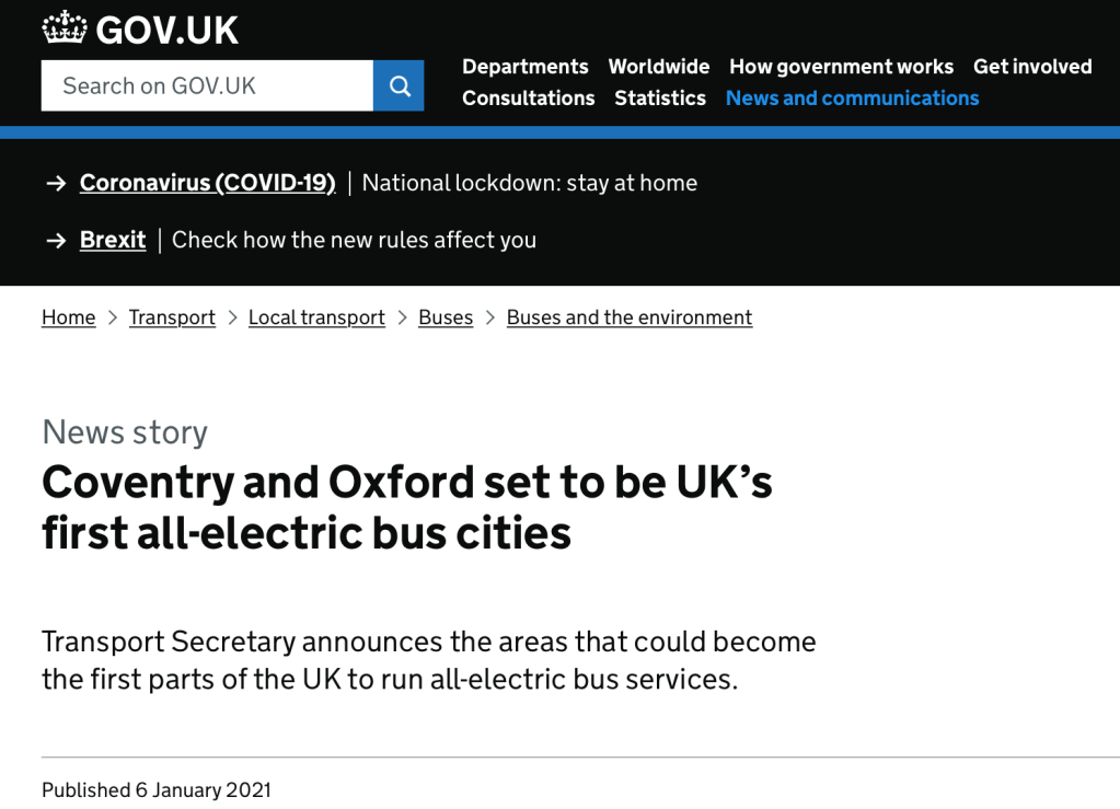 Wednesday saw the Transport Secretary formally announce Coventry and Oxford “are set to the the UK’s first all-electric bus cities”, something widely known in the industry for some time. But note the “are set to” caveat as the £50 million prize money on offer is “subject to successful business cases”. It turns out, that just like a round in the BBC’s Only Connect quiz programme although Coventry or Oxford won’t be going home, they haven’t won the money yet. They have knocked out 19 other areas that bid and stand to replace 500 buses and install a whole load of plugs, sockets and wiring but now they must sharpen their bid submission pencils a bit more and give DfT the right answers in the final round for that £50 million prize.
