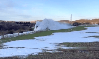 … as caught on camera in spectacular fashion near Huntly on the Aberdeen/Inverness line on Tuesday – the short video is well worth a watch – follow the link here to Network Rail Scotland’s tweet which featured the ‘Tractor Thrash Productions’ clip.