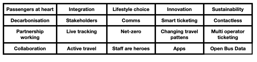All the more so yesterday, Friday, with a full day of it at the Quality Bus Conference organised by Landor Links with a whole host of speakers – 27 in total. I got my Bus Conference Bingo Card ….