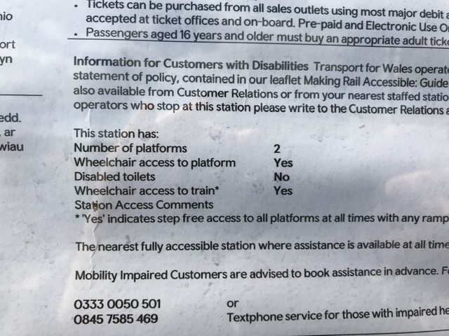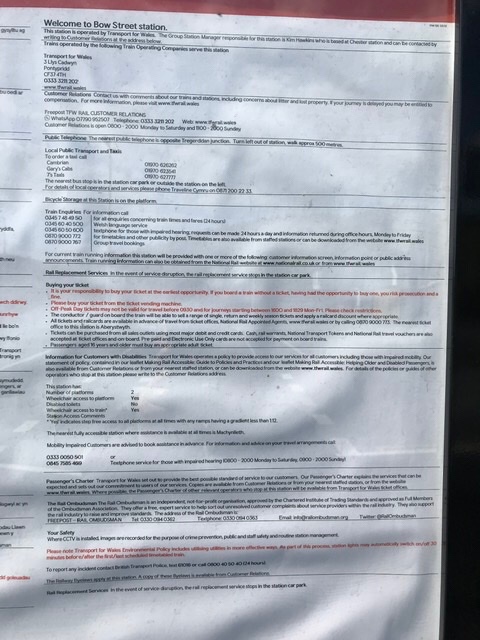 I printed off Transport for Wales (TfW)’s original specification for Bow Street station to take with me today so I could do an inventory check and make sure that £8 million has all been spent on……