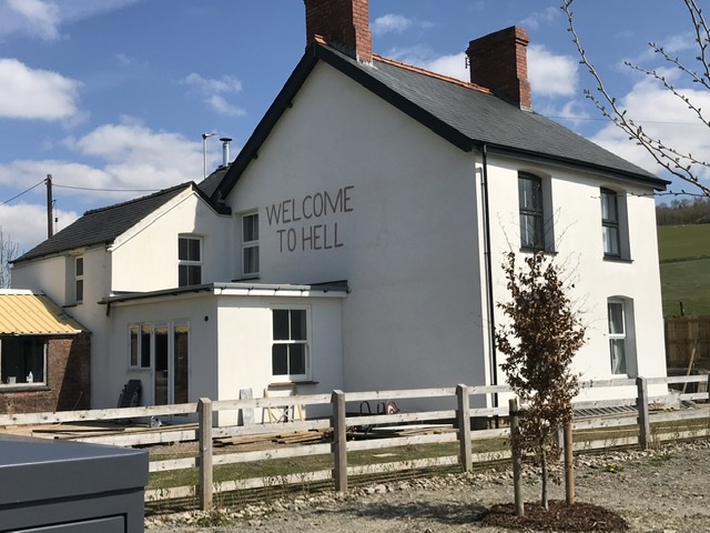 Interestingly the house alongside the entrance to the new station off the A487 has painted a welcome message on its rear, facing the station. Perhaps they’re not keen on the £8 million spend either.