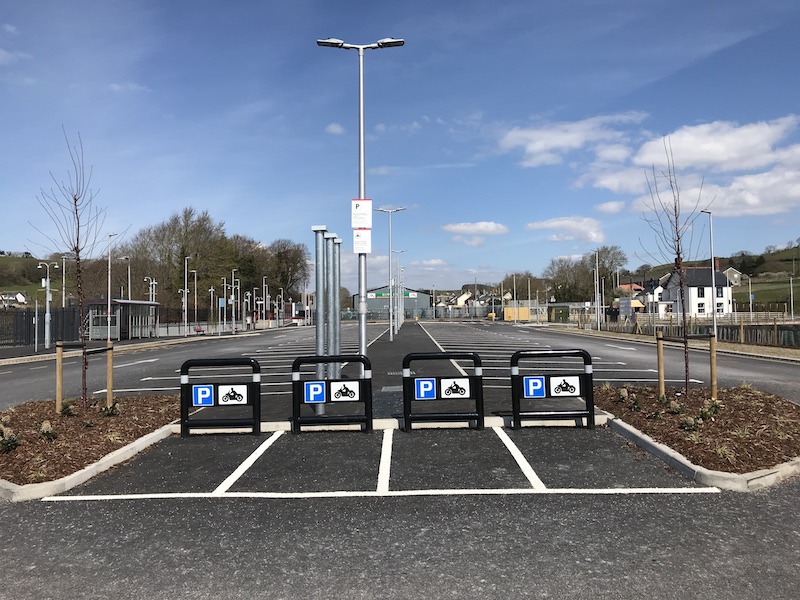 Bow Street’s credentials were boasted as featuring “cycle storage, park and ride facilities, and a multi-modal transport interchange”. As you can imagine I was particularly interested in the latter especially as an innovative ‘docking platform’ for buses to pull up alongside had been promised. It turned out to be nothing more than a fancy bit of kerb. And the cycle facilities are just six round pole stabling thingies.