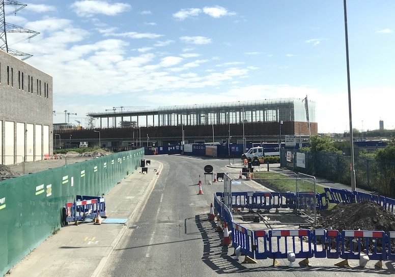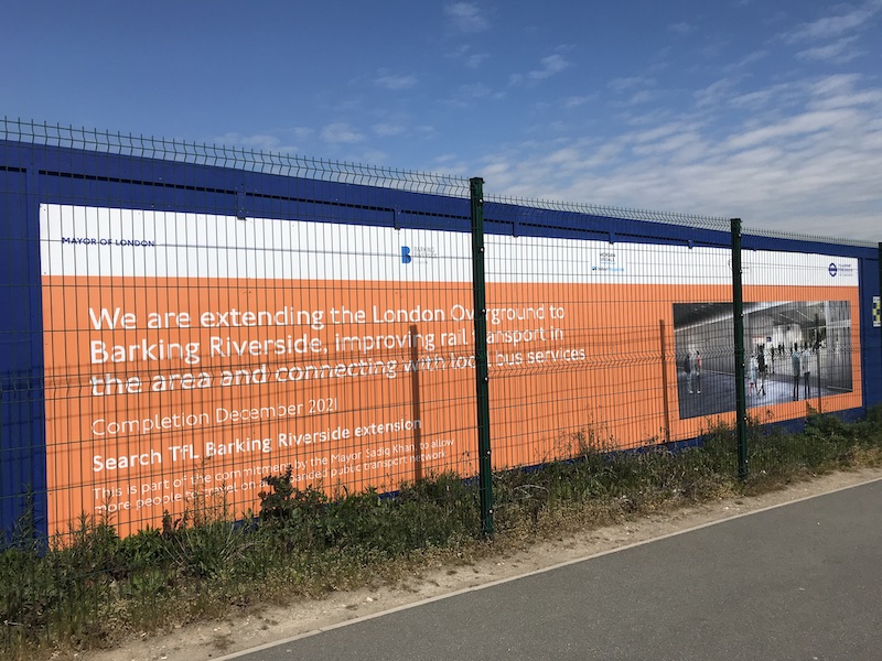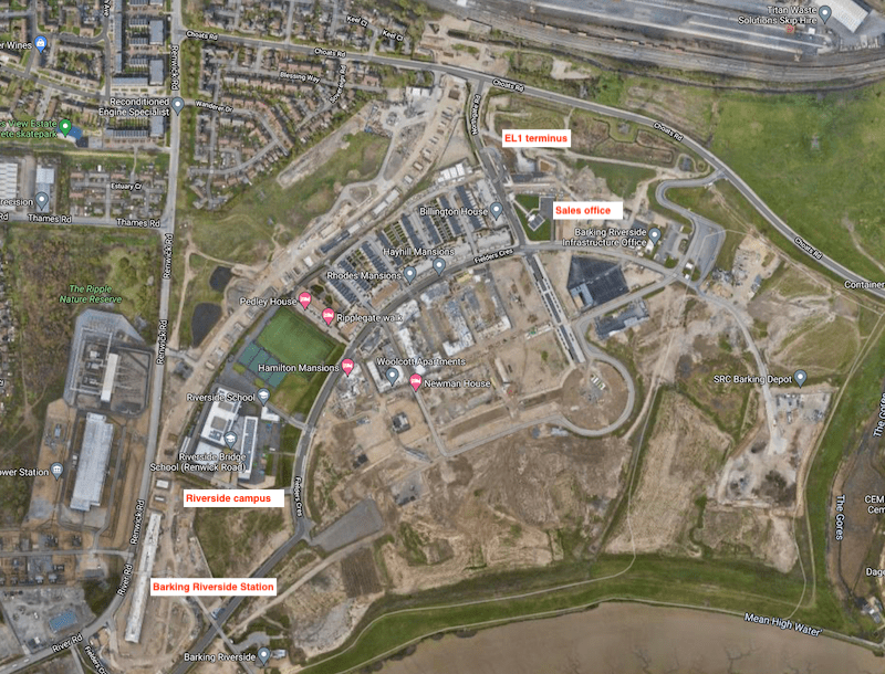 That’s why the London Overground line from Gospel Oak to Barking is being extended to a new station currently being built on the development site to be called Barking Riverside, shown in orange on the above photograph.
