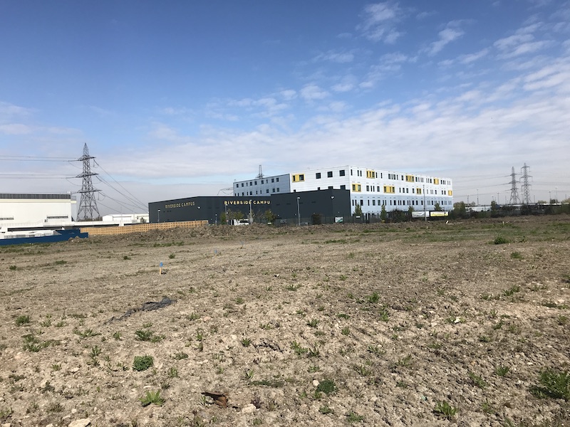 I didn’t see any local shops incorporated into this apartment zone, but between the site of Barking Riverside Station and the new terminal point for route EL1 is a large secondary school which has been open for a few years – called Riverside Campus.