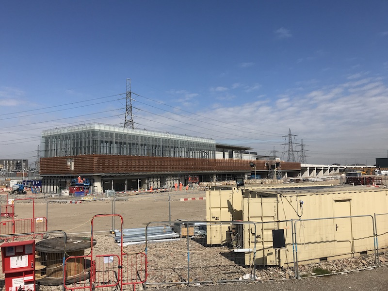 I took a look yesterday at progress and the station certainly stands out in the current rather barren area surrounding it, but of course all those new homes with potential passengers will be built in the months and years ahead. It does look a massive build for a 15 minute frequency rail terminus, but I guess the development is funding it, so why not?