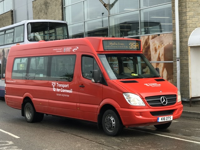 This is one of the many routes in the Falmouth area which have been subcontracted to local minibus operator OTS (aka as Office & Transport Services Ltd).