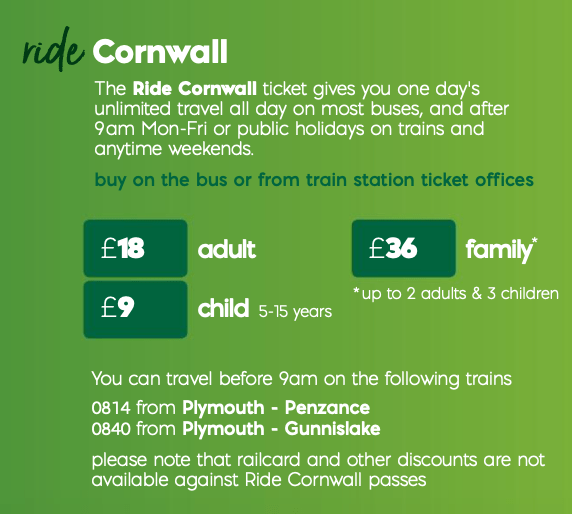 Details about Ride Cornwall can be found on First Kernbow’s website (above) and in their “Price and ticket guide”.