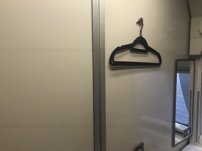 One minor improvement I noticed on this journey was the provision of two plastic hangers on one of the four hooks provided. But these seemed cheap and basic bearing in mind the prices being charged.