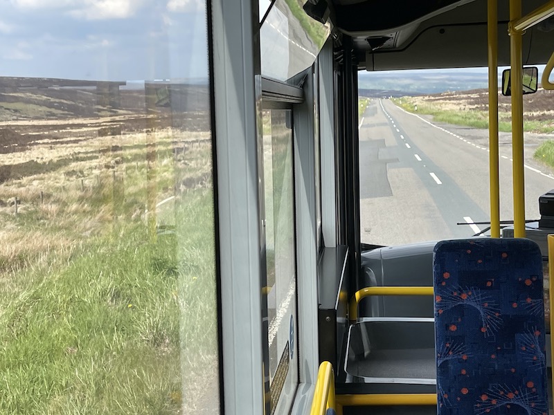 The last time I made the journey was in February 2018 when there was snow on the moors and slush on the roads so sadly very dirty bus windows meant sideways views were obliterated through the murk and dirt.