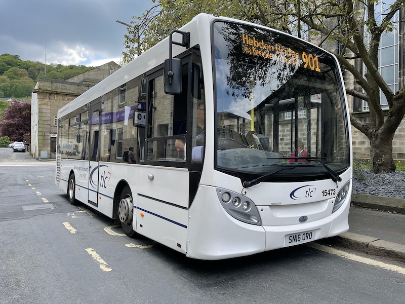 The first is route 901 operated by the small Bradford based bus company called tlc. This tendered operation runs between Huddersfield and Hebden Bridge on a rather quirky route taking in Stainland, Barkisland and Ripponden then heading out westwards towards Rochdale before turning northwards across Blake Moor to Hebden Bridge.