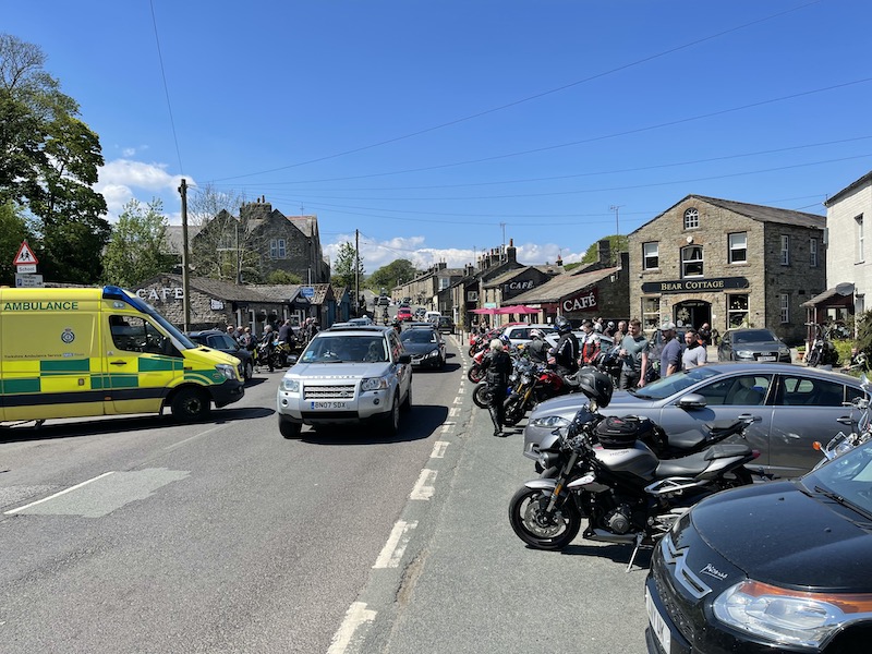 …as well as flotillas of motorcyclists who love to pass by in convoy on their way to the traditional leather clad gathering at Hawes every Sunday.