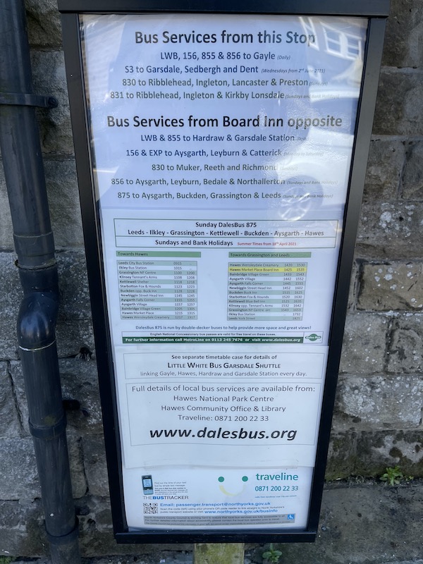 PS By then I hope North Yorkshire County Council might do their bit and clean up or even replace the rather murky bus stop plate in the centre of Hawes. It might just create a better impression among passing motorists and motor cyclists.