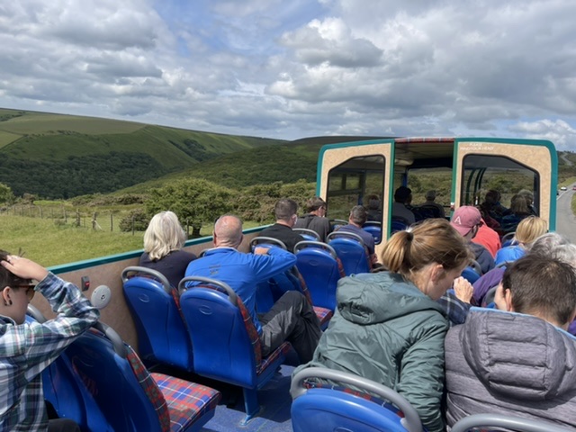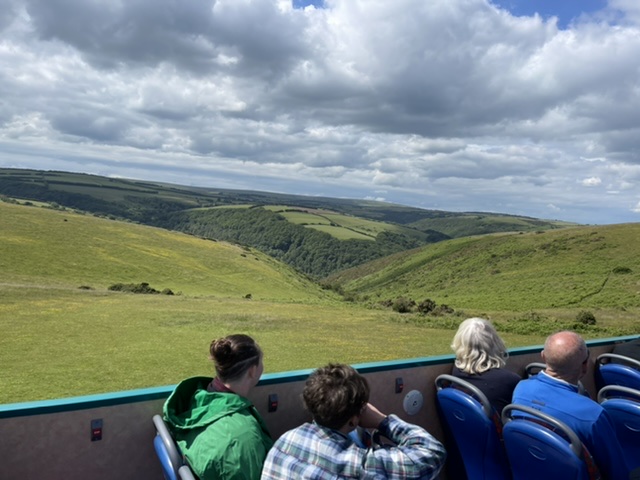 The views across Exmoor and over to the coast are simply superb and all the better from being seen from the top deck.