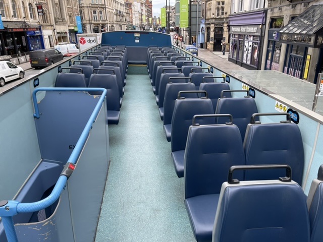 The forward facing seats on the ex-Lothian vehicle would have been used by a live guide around Edinburgh. That way the guide can face their audience